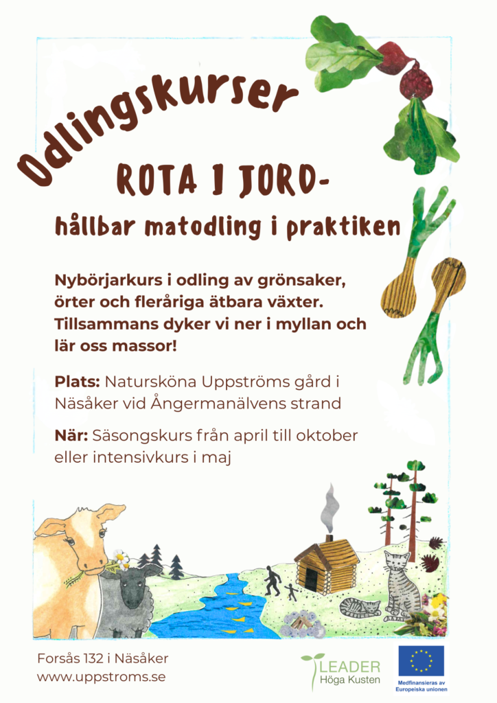 Att bygga upp och starta igång dessa odlingskurser är en del av projektet ”Växtplats Nämforsen”. Projektet ”Växtplats Nämforsen” får stöd från Leader Höga Kusten, Jordbruksverket och EU.